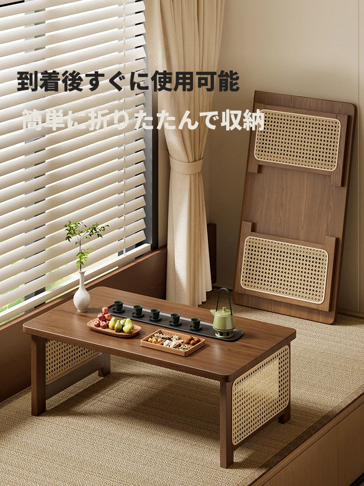 窓辺にぴったり!折りたたみ式のタタミ茶卓 - 和の心を感じる新しい2025年モデル、バルコニーや寝室に最適な低テーブル。リラックスしたひとときをお楽しみください。