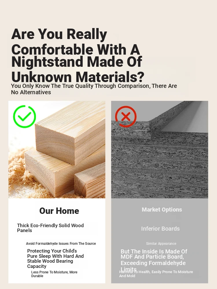 Modern Minimalist Solid Wood Bedside Table - 2025 New Design for Home Bedroom, Perfect Space-Saving Side Cabinet for Storage and Organization