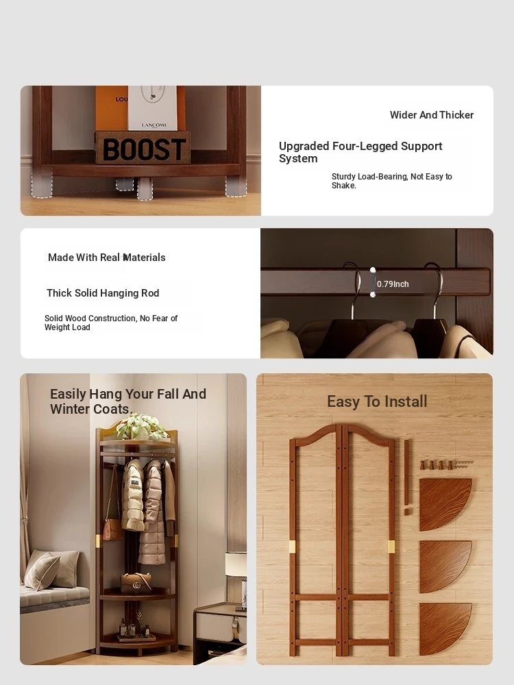 Solid Wood Freestanding Coat Rack - Perfect for Bedroom and Entrance Hall, Corner Space Saver, Nighttime Clothing Organizer, Stylish and Functional Design