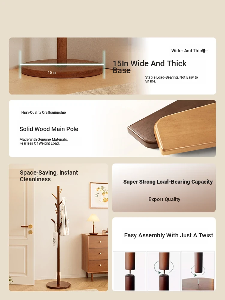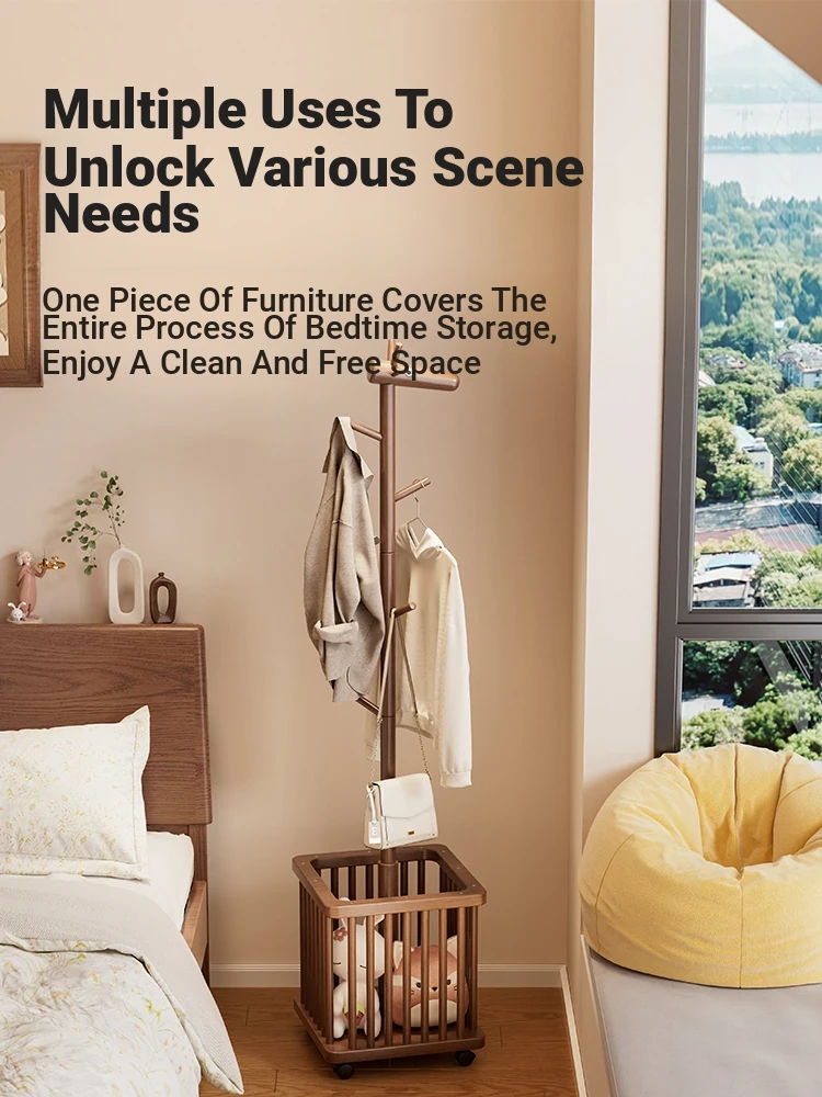Solid Wood Floor Coat Rack - Versatile Bedroom Clothes and Hat Stand, Ideal for Entryway or Small Spaces, Perfect for Bedside Use and Wall-Mounted Clothing Storage.