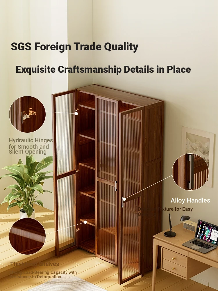Wooden Bookshelf Floor Storage Rack with Dust-Proof Transparent Acrylic Doors - Stylish Home Library Cabinet, Perfect for Wall Storage Solutions