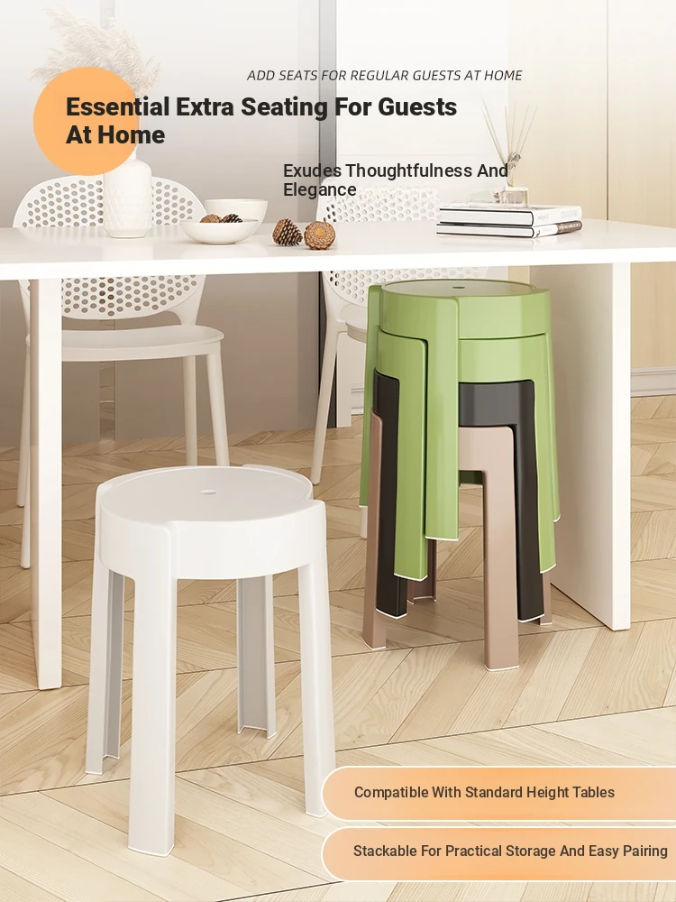 Stylish Thickened Plastic Stool for Home Use - Elegant Stackable Soft Cushion High Chair for Living Room Guests, Space-Saving and Versatile