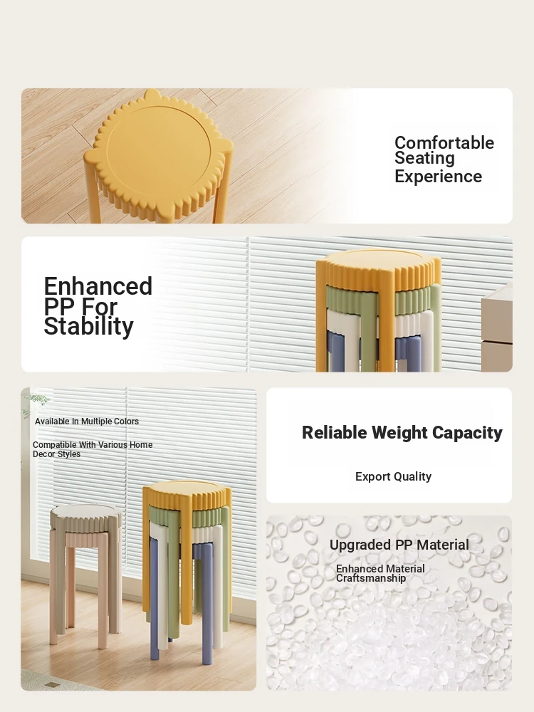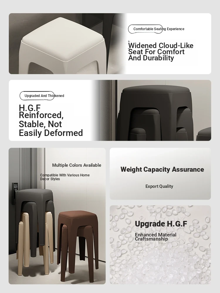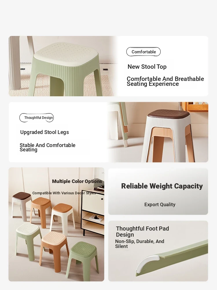 Durable Stackable Plastic Stool for Home Use - Modern Minimalist Design, Space-Saving Soft Cushion Square Bench, Perfect for Any Room