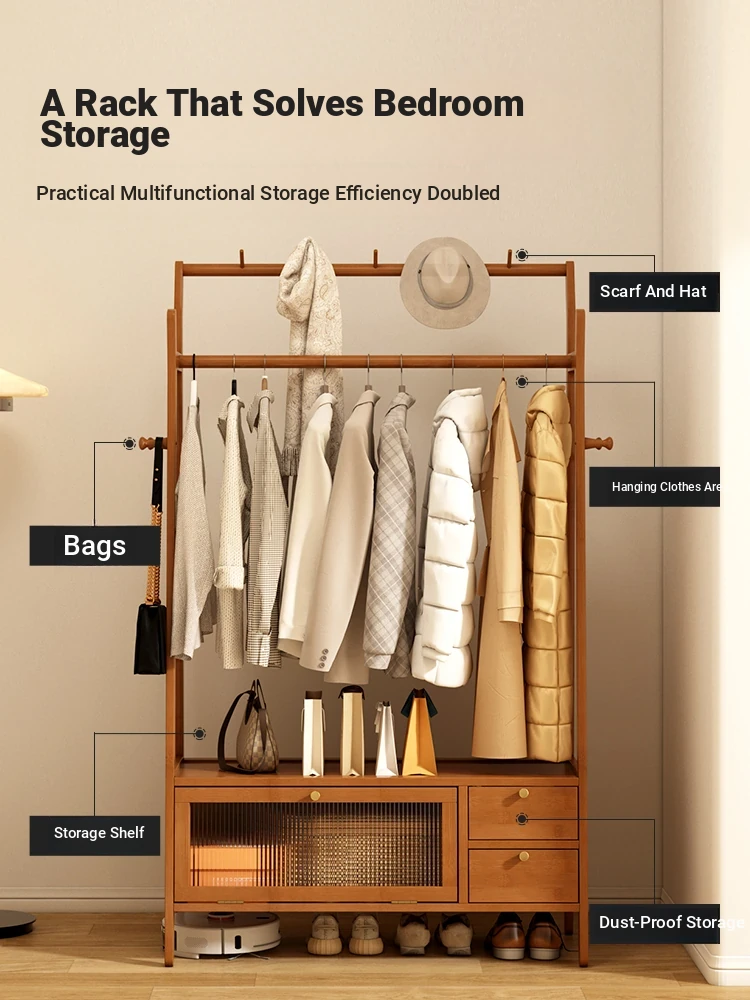 Multifunctional Bedside Table and Clothes Rack - Dustproof Free-Standing Wardrobe for Bedroom, Open Storage Organizer and Entryway Coat Stand