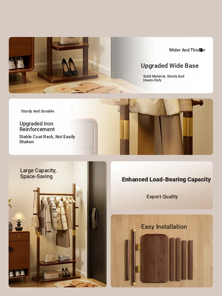 Solid Wood Coat Rack - Stylish and Functional Bedroom Entryway Hanger, Portable Small Clothing Rack for Home Use, Perfect for Kids' Clothing and Storage Solutions