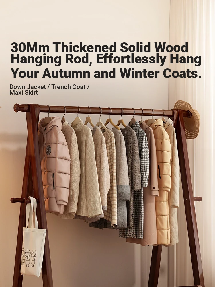 Solid Wood Freestanding Clothes Rack - Stylish and Versatile Bedroom Coat Hanger, Easy-to-Fold Indoor Drying and Storage Solution for Clothes and Accessories, Perfect for Bedside Use