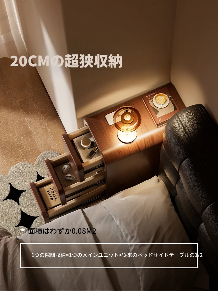 2025年最新!超スリムな無垢材ベッドサイドテーブル - 20cmの隙間にもぴったりフィット!おしゃれで機能的な収納スペースを提供する、高品質な家庭用寝室向けナローベッドサイドキャビネット。