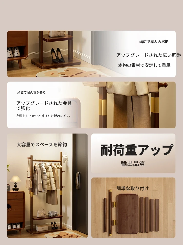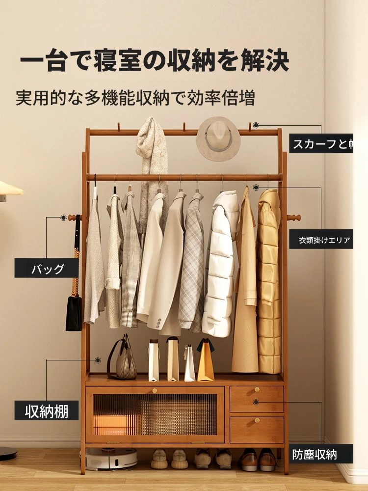 天然木製の衣服掛け - 寝室や玄関にぴったりのコンパクトで移動可能なハンガーラック!子供のおもちゃ置きにも最適!おしゃれで便利な収納アイテムで、スッキリとした空間を実現します。