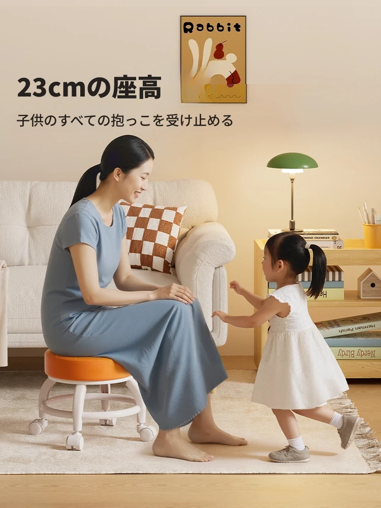 キャスター付き小さなスツール|家族に優しい疲れ知らずの座り心地|子供も安心の低めデザイン|リビングやソファにぴったりな頑丈なキャスターチェア