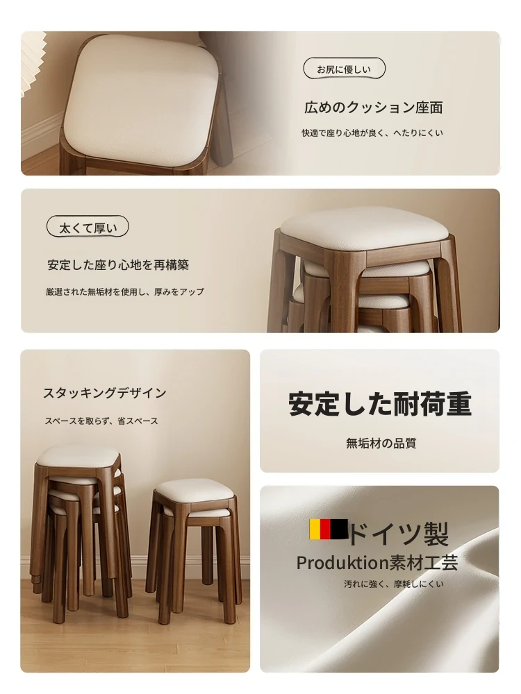 スタイリッシュな無垢材スツール - 家庭用、重ねられるソフトパッド付き、リビングにぴったりのモダンな小型角スツール、ダイニングテーブル用チェアとしても最適!
